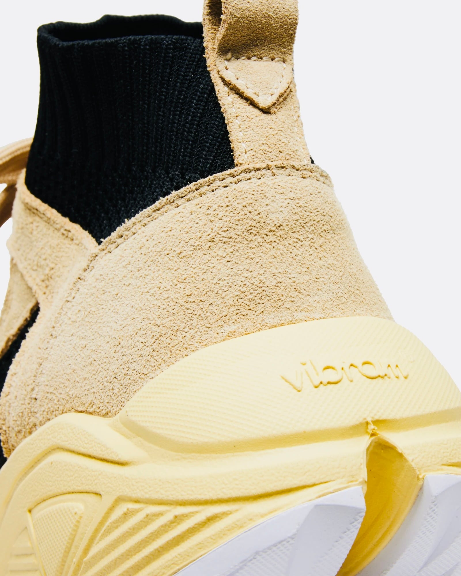 一体型のニットを使用し、レザーパーツで補強を施したデザインにVIBRAMソールを組み合わせたモデル。ニットアッパーの柔らかさとソールのVIBRAM ROLLNGAIT SYSTEMにより快適な履き心地をサポート。