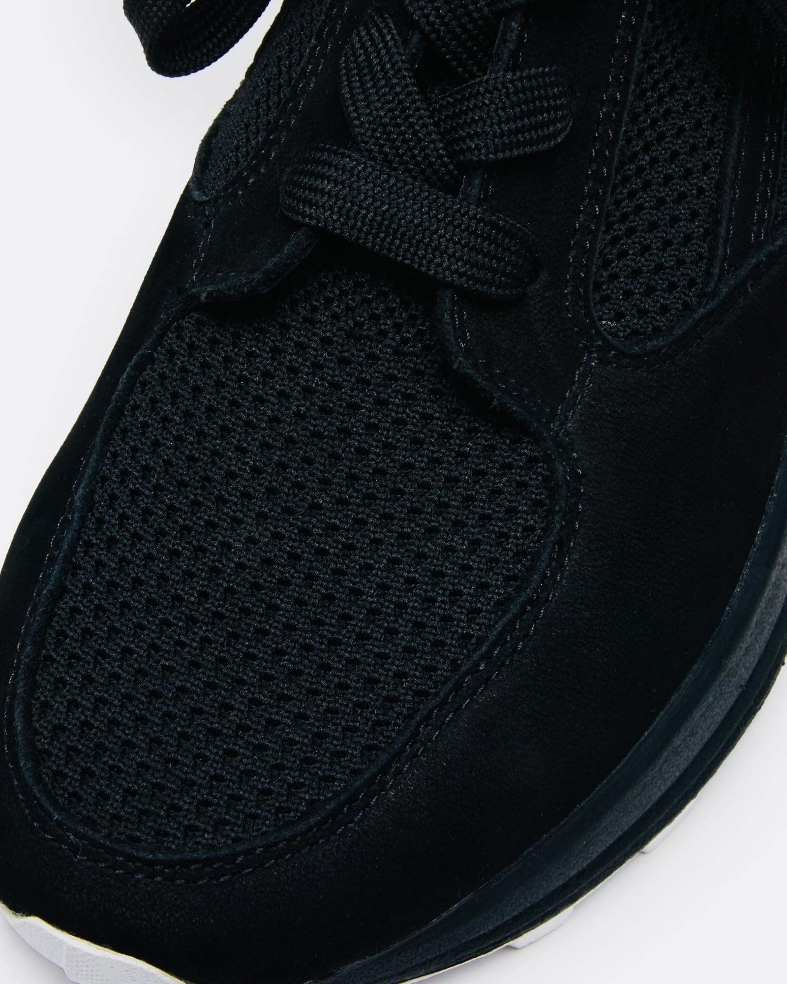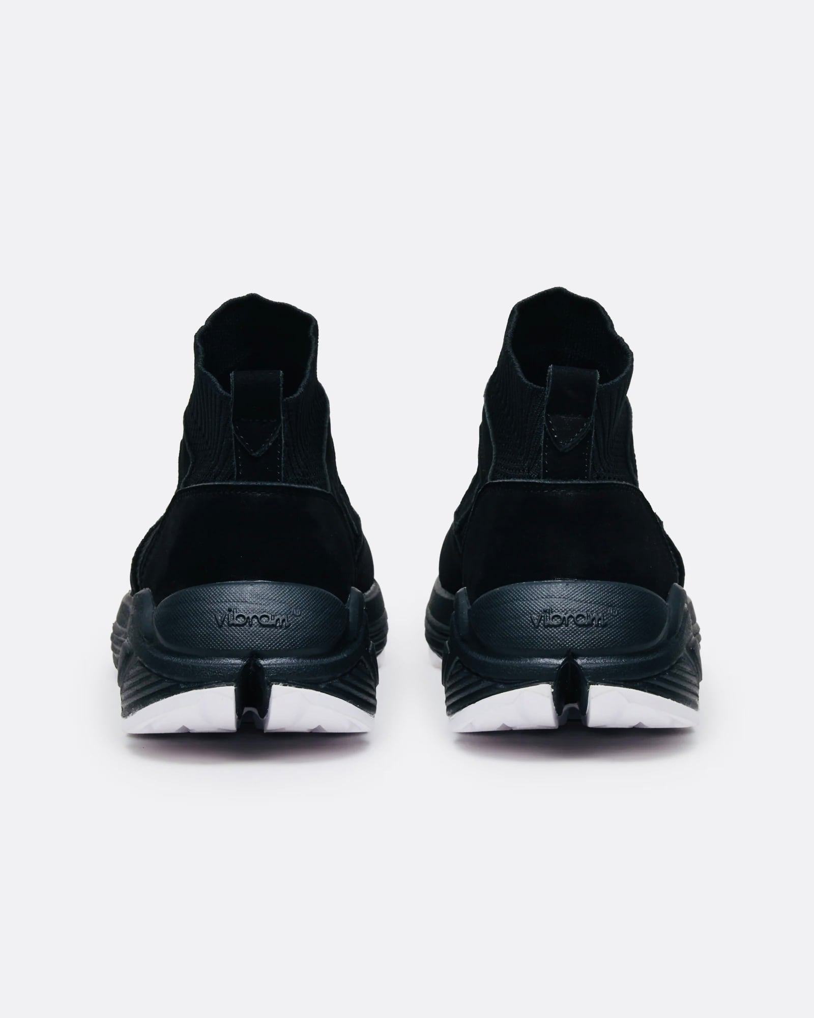 一体型のニットを使用し、レザーパーツで補強を施したデザインにVIBRAMソールを組み合わせたモデル。ニットアッパーの柔らかさとソールのVIBRAM ROLLNGAIT SYSTEMにより快適な履き心地をサポート。