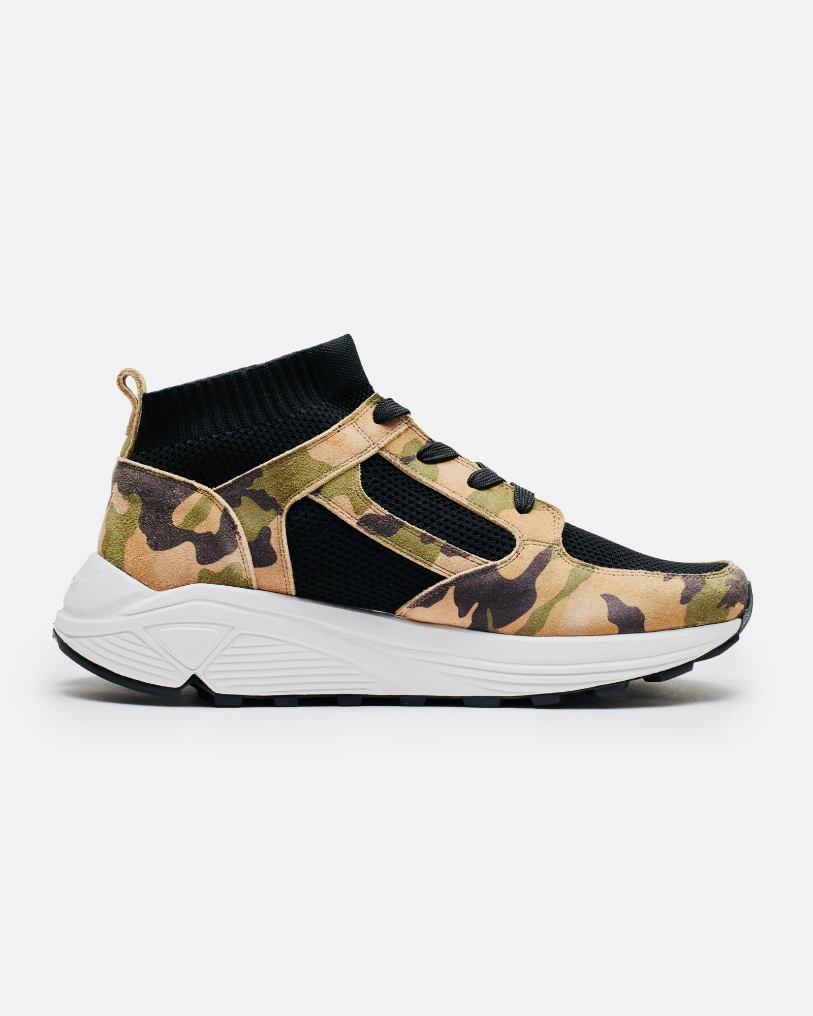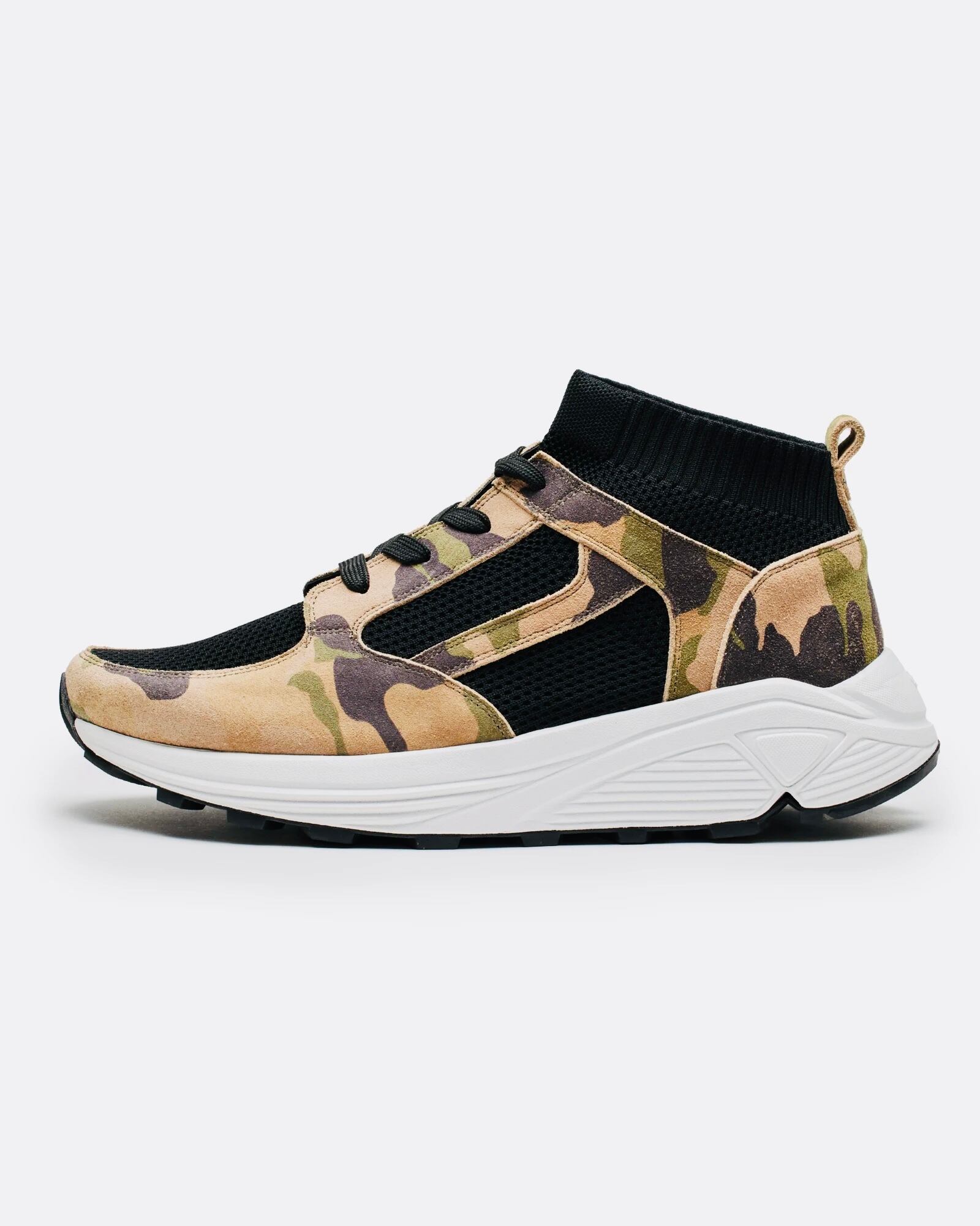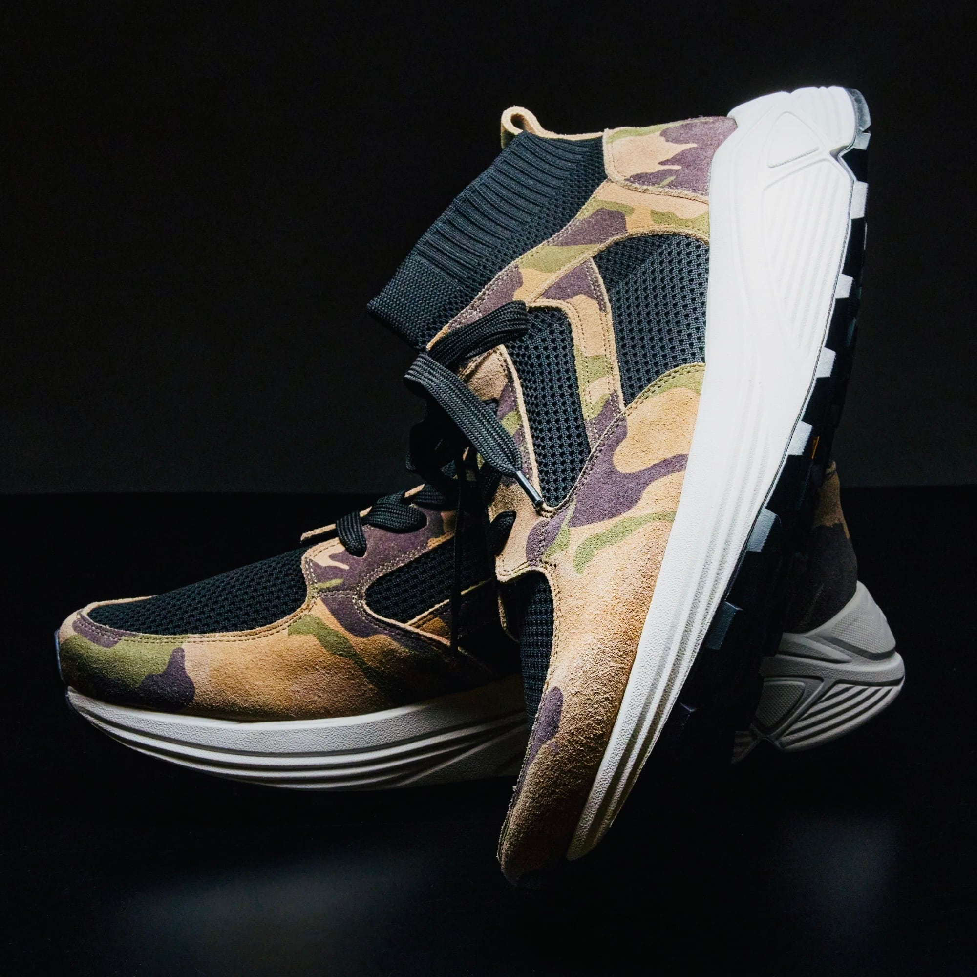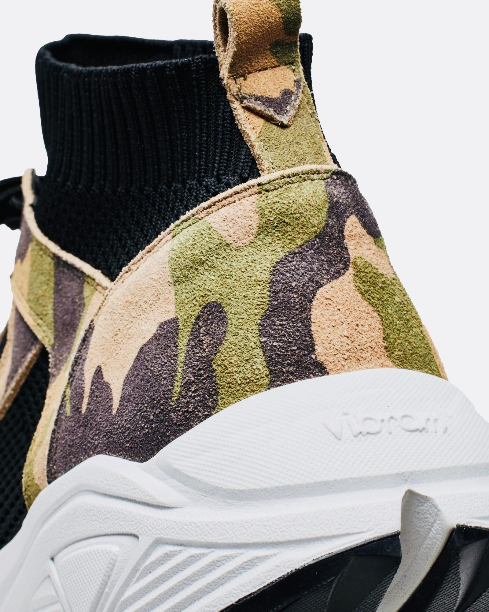 一体型のニットを使用し、レザーパーツで補強を施したデザインにVIBRAMソールを組み合わせたモデル。ニットアッパーの柔らかさとソールのVIBRAM ROLLNGAIT SYSTEMにより快適な履き心地をサポート。