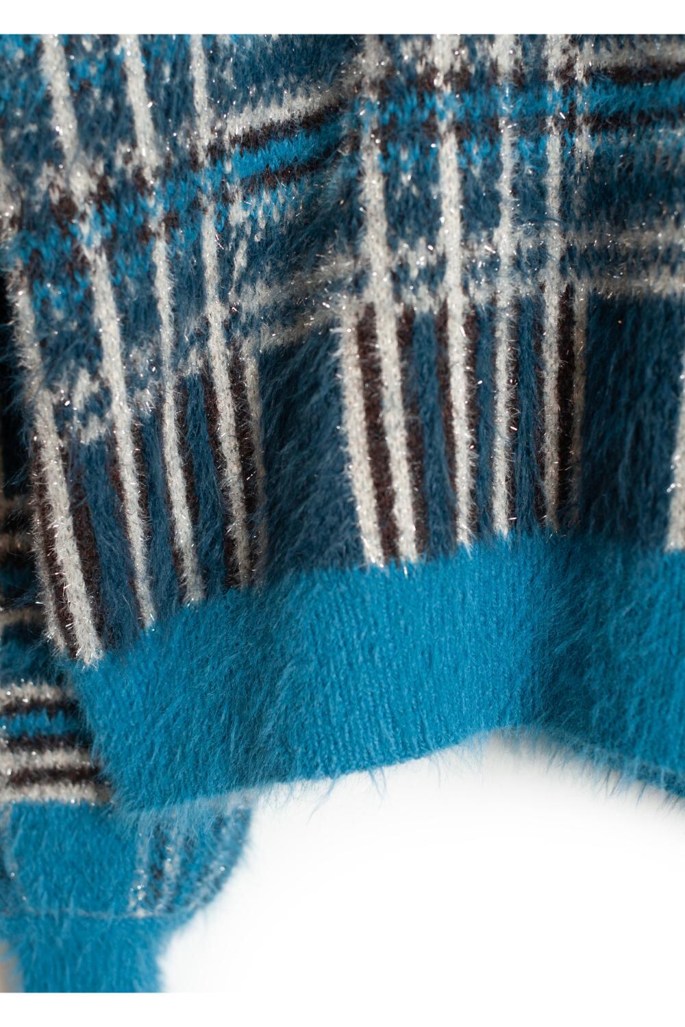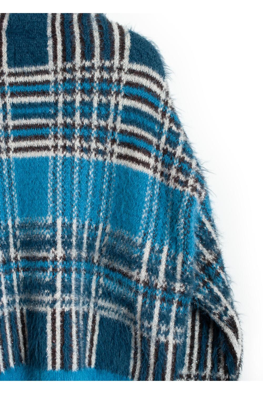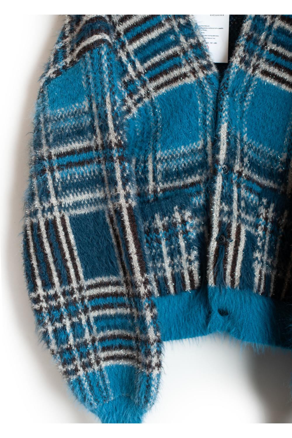 Lustre Check Knit Cardigan BLUE