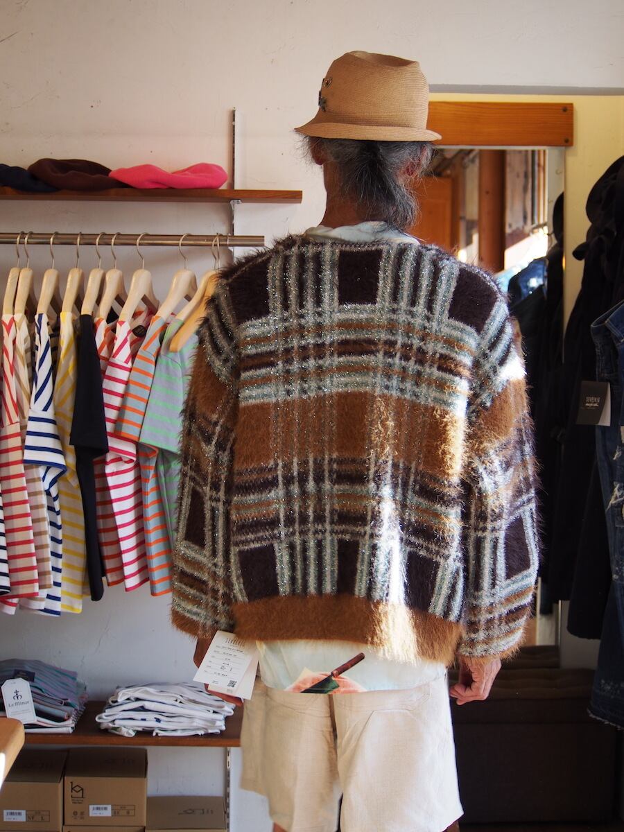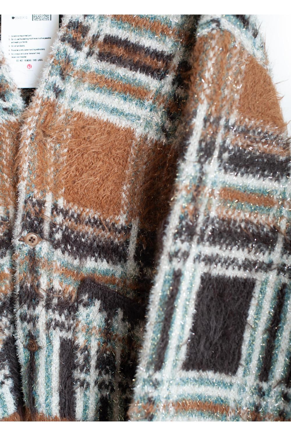 SEVESKIG Lustre Check Knit Cardigan BEIGE