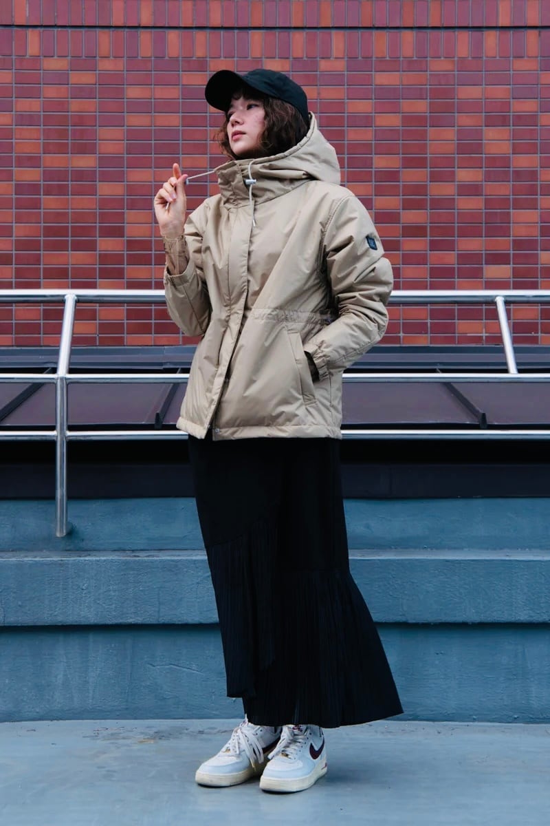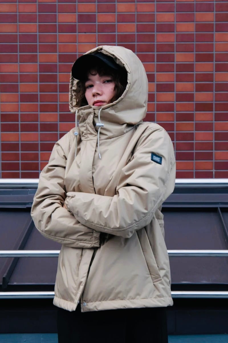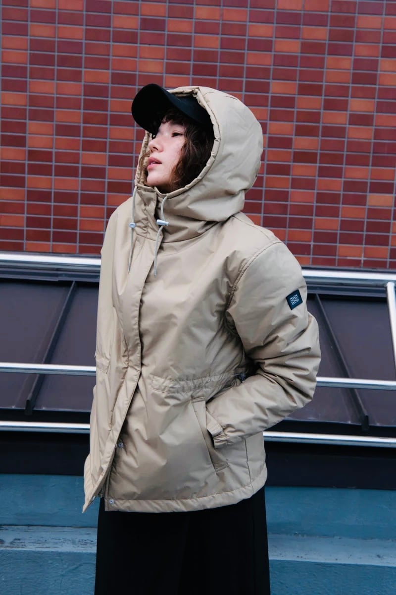 フードの裏地には起毛素材を使用しているので、フードをかぶった時に肌に触れても心地良い仕様になっています。またウエストにスピンドルが付いていますので、家で水洗いもできるため、ケアも簡単です。