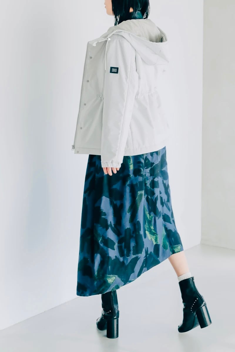 フードの裏地には起毛素材を使用しているので、フードをかぶった時に肌に触れても心地良い仕様になっています。またウエストにスピンドルが付いていますので、家で水洗いもできるため、ケアも簡単です。