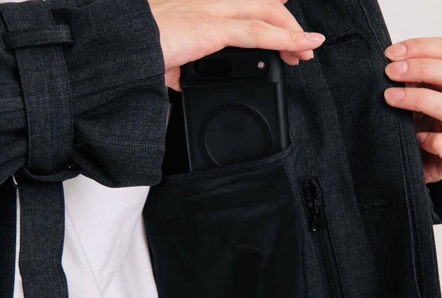 バッグを持たずに出かけたいときや、アウトドアシーンでも活躍。さりげない実用性が、“気の利いた一枚”。