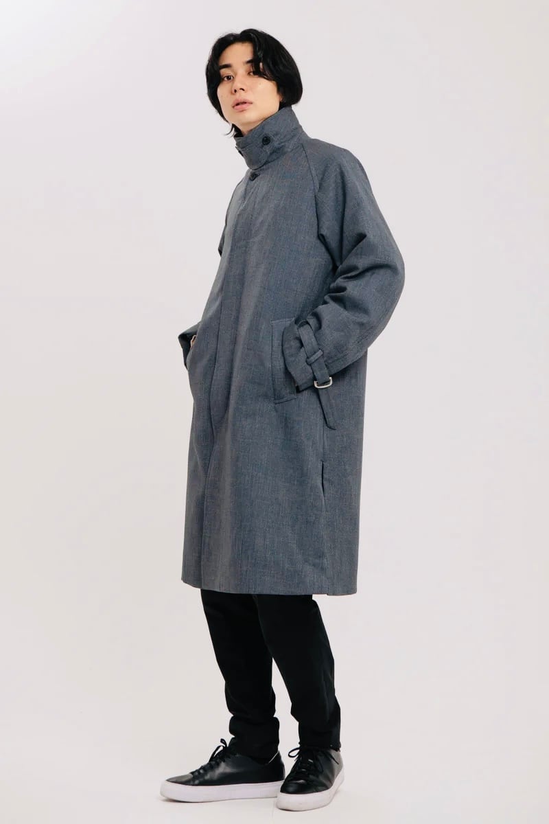 上品さとリラックス感を併せ、首元は凛と引き締めるスタンドカラー。