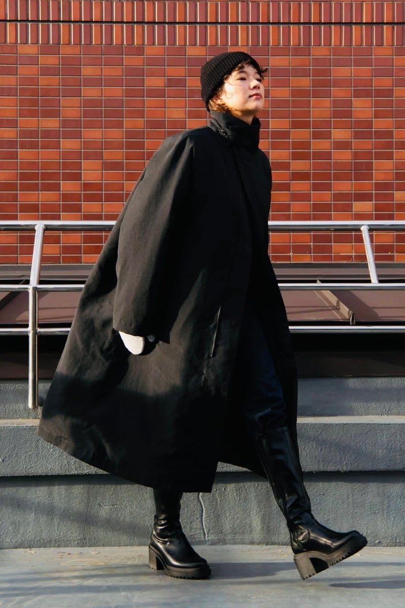 KAPOK KNOT スタンドカラーコート-Unisex BLACK
