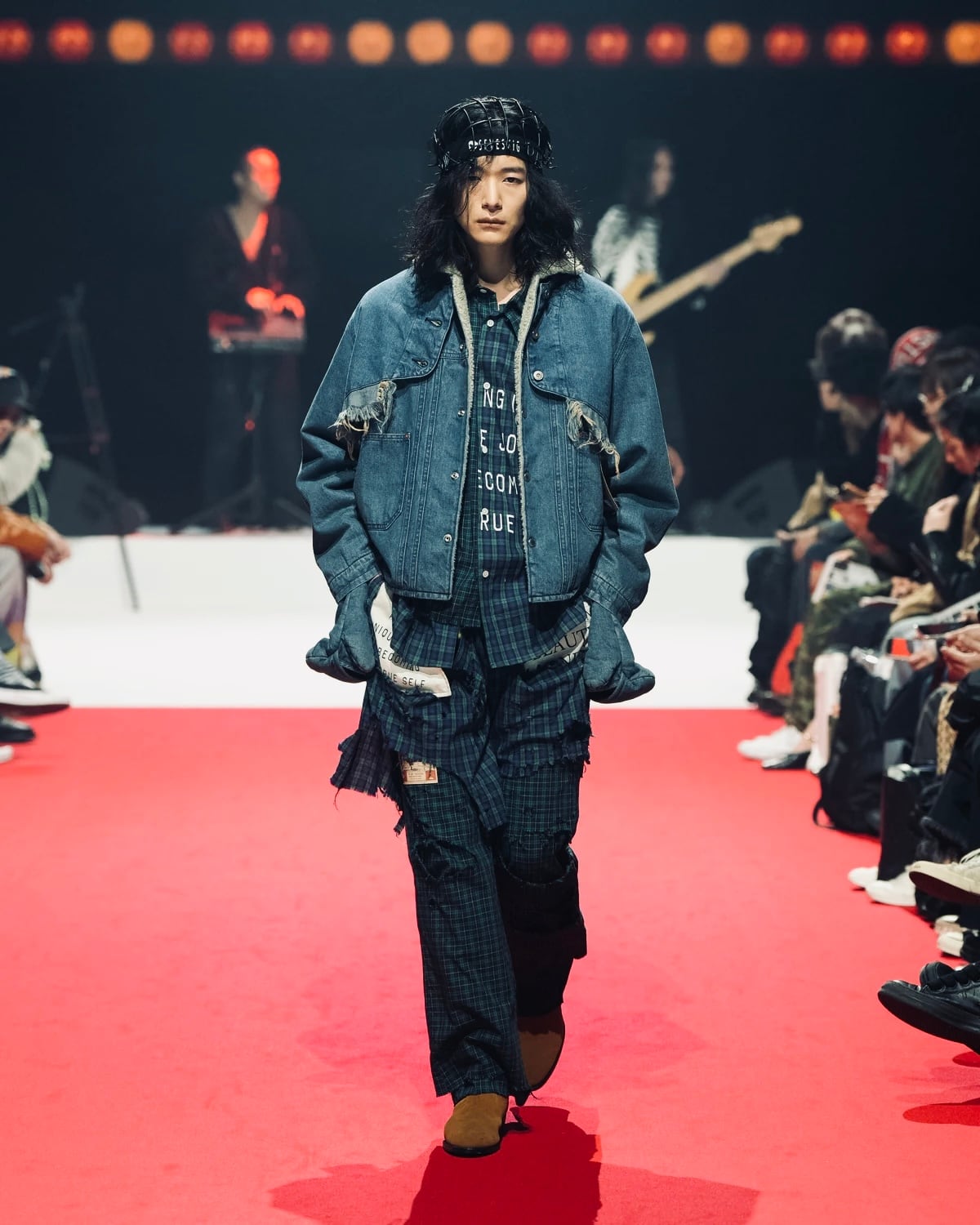 2025秋冬コレクションでは、日本の独自の美意識をインスピレーションに、デザインを構築している。 特に「無常」の思想に注目し、すべてが移ろいゆく自然の摂理を受け入れる姿勢を反映。 日本文化の根底には、儚いものや瞬間的な美しさ、不完全さや経年変化の中に価値を見出す視点がある。 例えば、風雨にさらされた石畳や苔むした古い神社が持つ「佇まい」は、単なる老朽化ではなく、長い年月が刻んだ時間の重みや静けさを感じさせ、 そしてそれは、人が歳月を重ねることで深みや個性が生まれ、内面の美しさを増していく様子にも通じる。