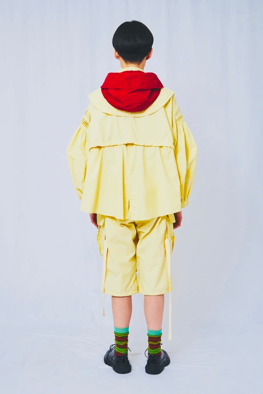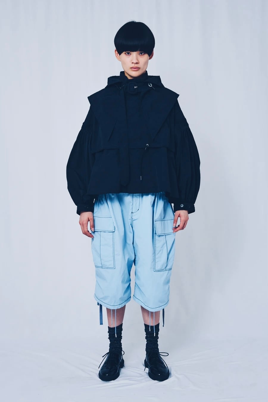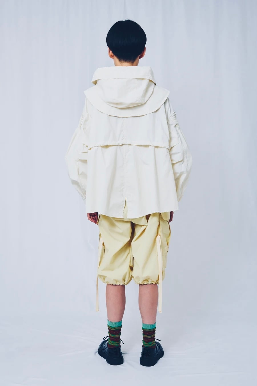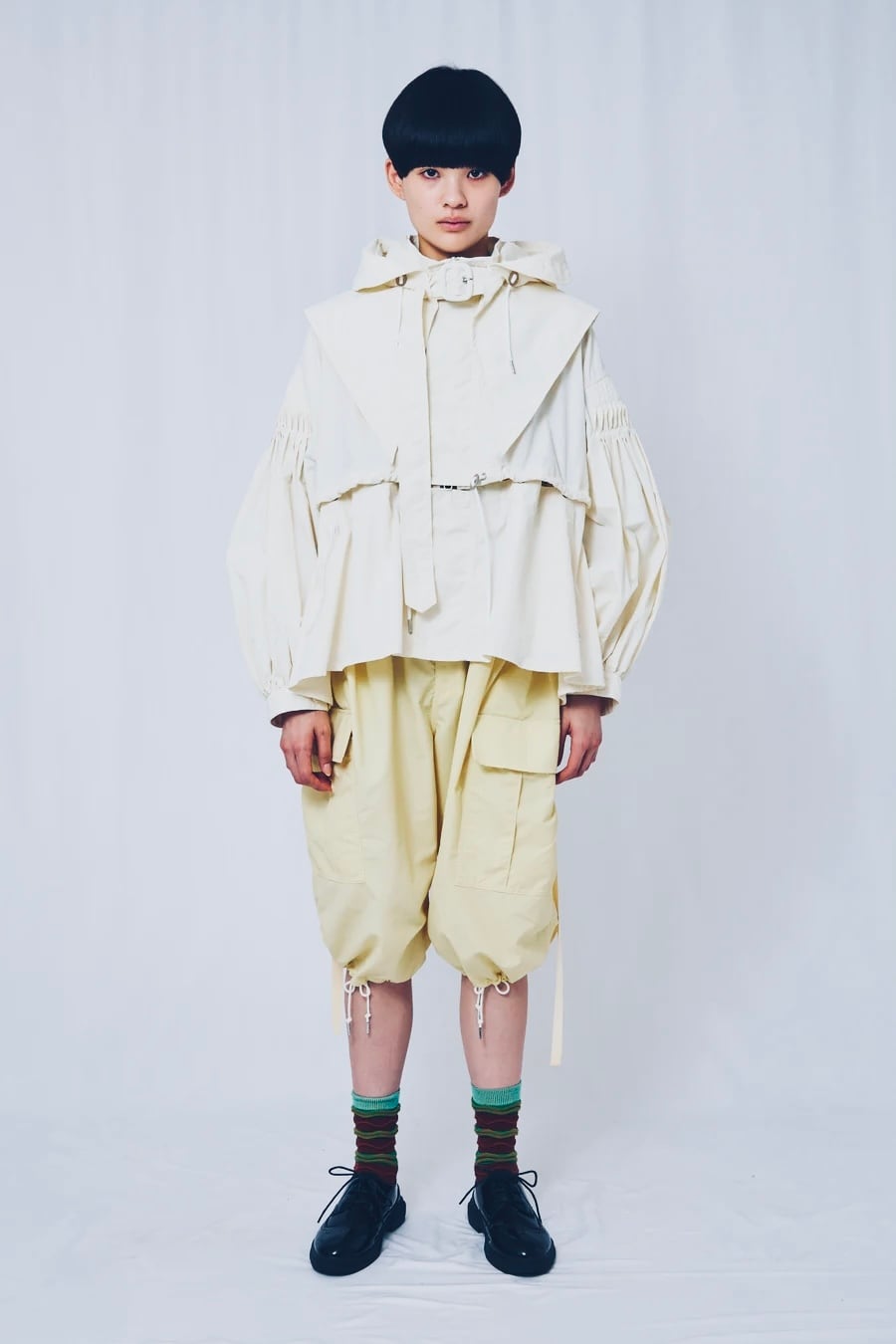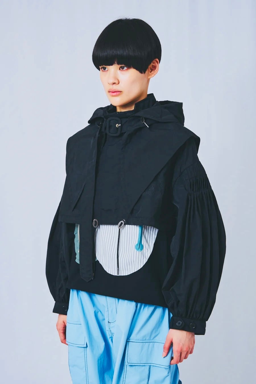 MEGMIURA WARDROBEのシグネチャーとも言えるショートモッズコート。今シーズンはフード先が、バックルデザイン。 きめの細かいナイロンのクロ゙ グラン素材。 撥水加工を施しているため、春の寒い風雨をふせき、゙ 梅雨時期の羽織にも活躍します。 フート襟゙(雨よけ)か取゙り外してぎ、裾部分かデダッチャフル゙仕様てマ゙イクロ丈にすることか可゙能。 1年中使える優秀なコートです。フード襟を取り外して、Tシャツとレイヤードなども楽しめます。