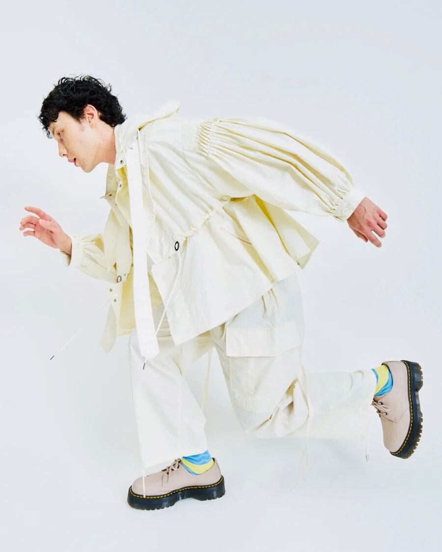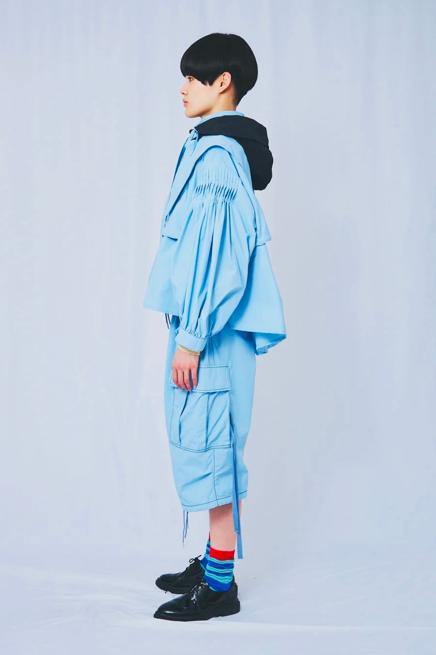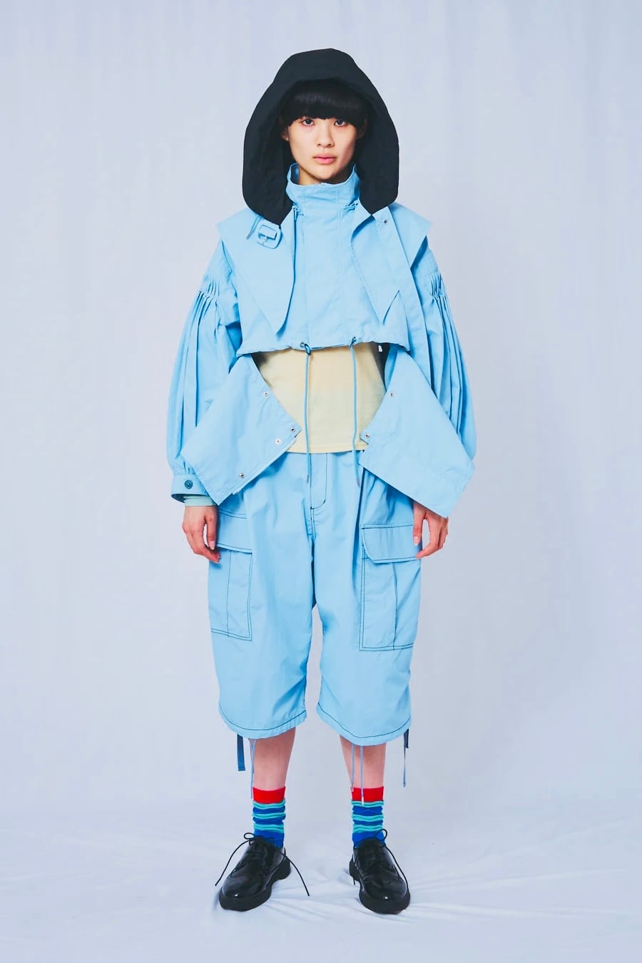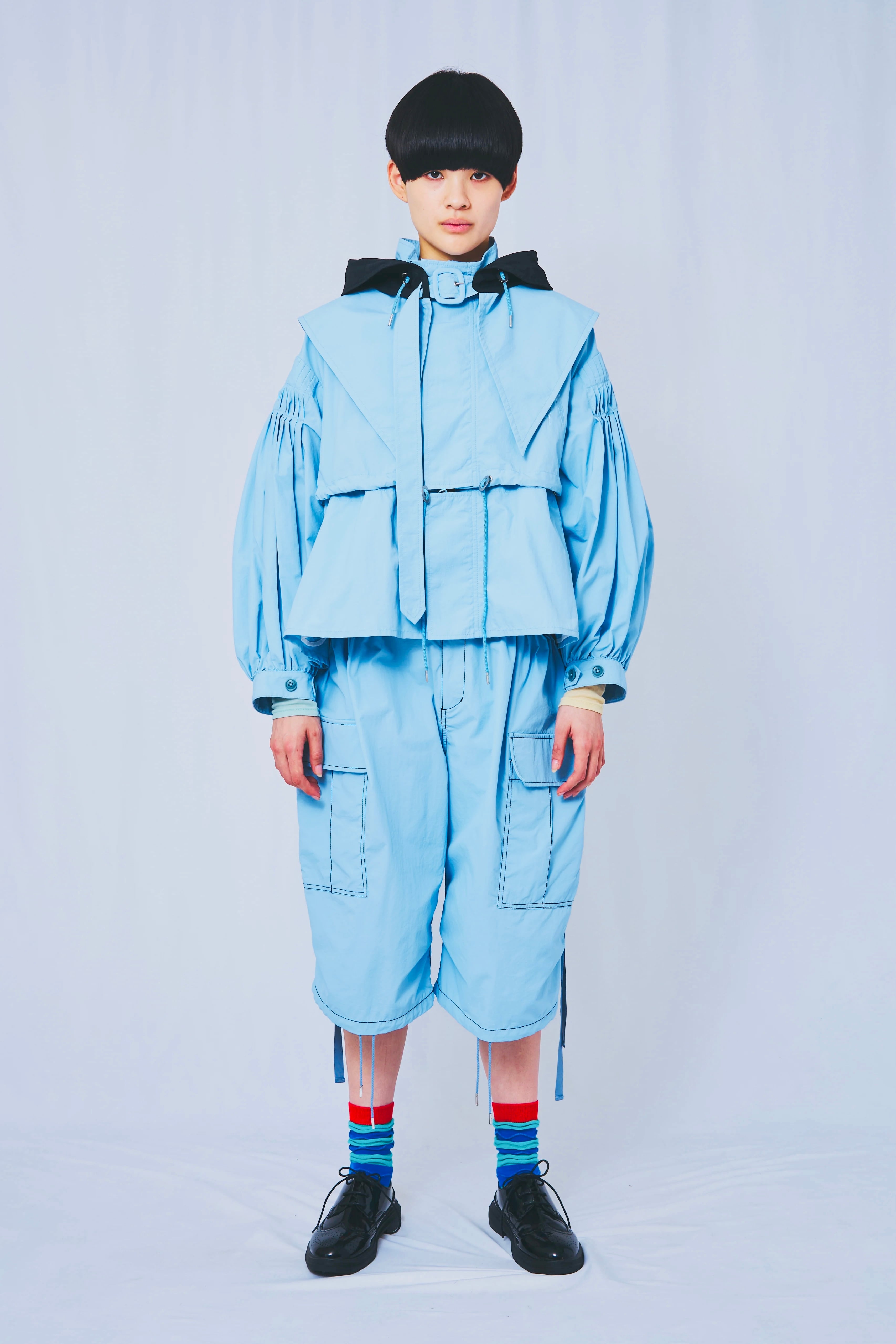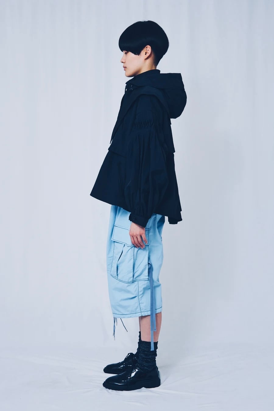 MEGMIURA WARDROBEのシグネチャーとも言えるショートモッズコート。今シーズンはフード先が、バックルデザイン。 きめの細かいナイロンのクロ゙ グラン素材。 撥水加工を施しているため、春の寒い風雨をふせき、゙ 梅雨時期の羽織にも活躍します。 フート襟゙(雨よけ)か取゙り外してぎ、裾部分かデダッチャフル゙仕様てマ゙イクロ丈にすることか可゙能。 1年中使える優秀なコートです。フード襟を取り外して、Tシャツとレイヤードなども楽しめます。