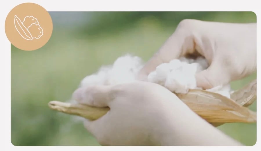 カポックは木の実なので木を伐採することも、動物の羽毛をいただくこともありません。