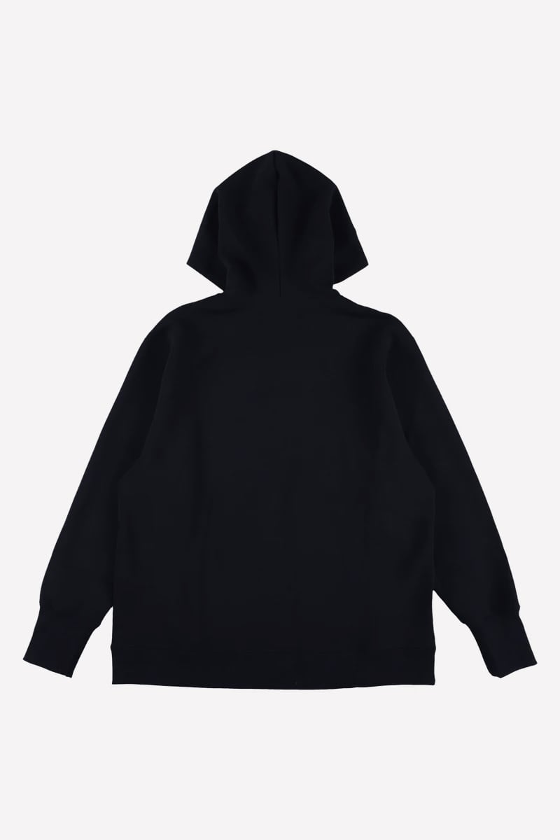 リサイクルポリエステルでできたハリのある生地「ダンボールニット」を使用した、シックなパーカー。